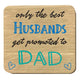 “Only the best Dad's get promoted to Grandpa” Top Quality Oak Veneer Coaster / Beer mat The perfect gift for friends & loved ones. Coated to protect from spillage Features: Wooden Plaque Size: 100 x 100 mm (approx) 5mm thick Material: Oak Veneer POSTAGE 2nd Class - Free - posted...